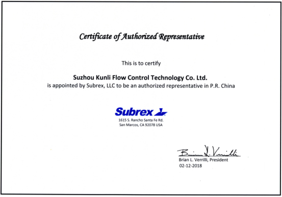 美國Subrex LLC公司正式授權(quán)蘇州坤力成為中國的經(jīng)銷代理商